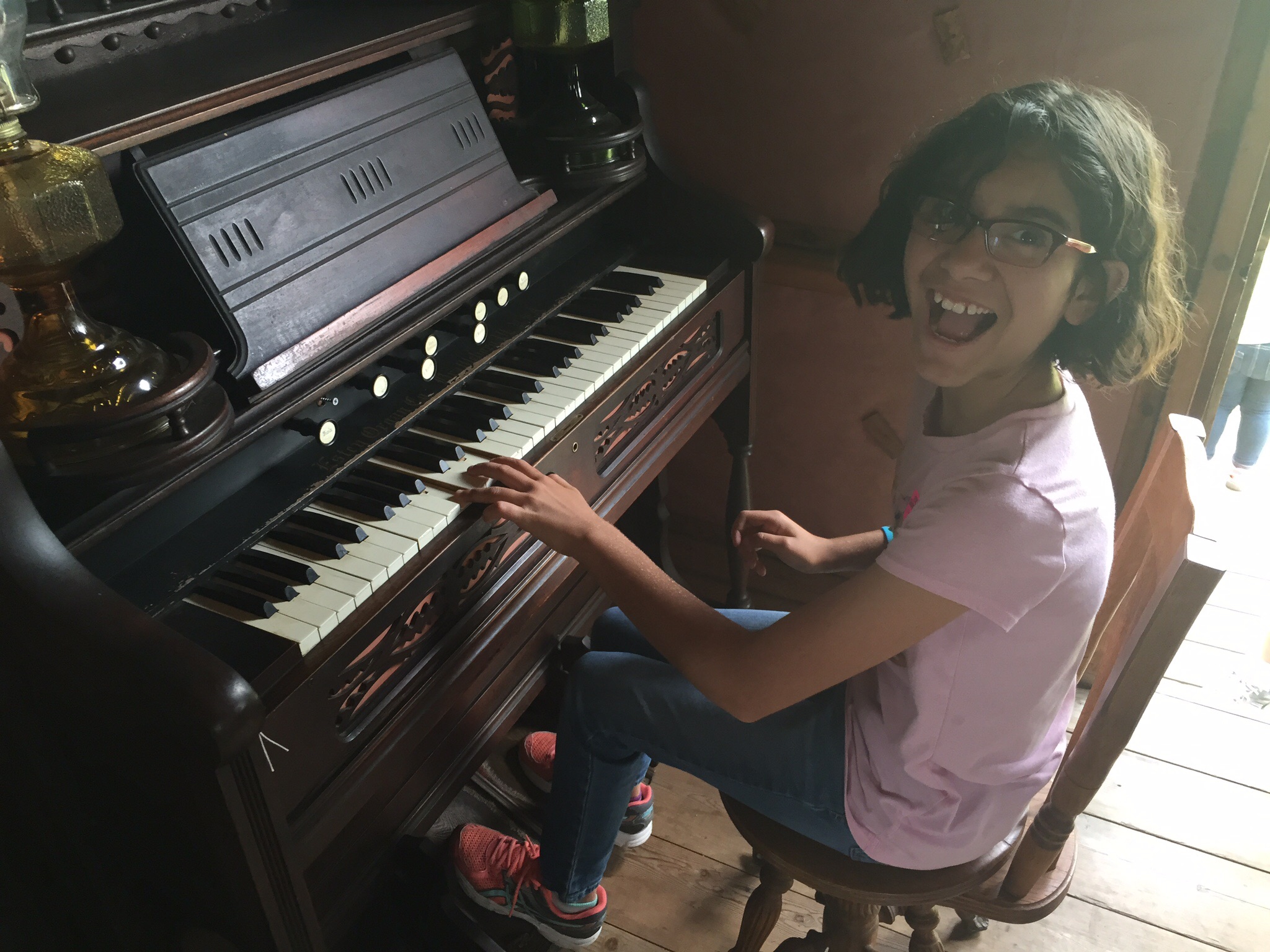 Here are some pictures of the stove, a corn husk bed, the foot pedal sewing machine, and an authenic foot pedal organ like the one Mary Ingalls used to play.