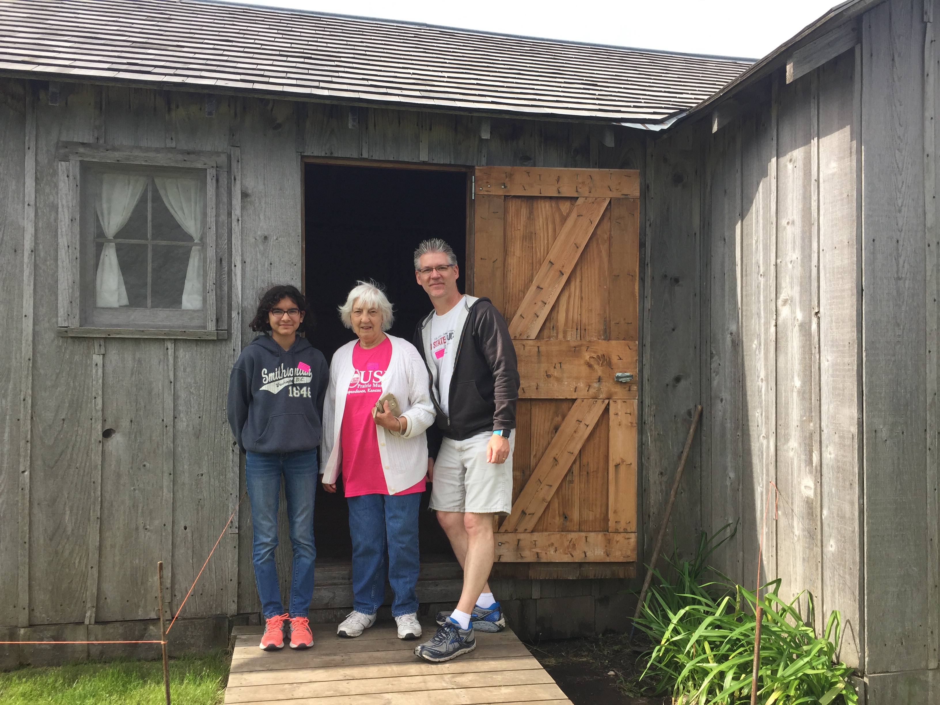 After breakfast we hurried over to the Homestead. We wanted to get there early to have the place to ourselves for a bit to get clear pictures, and explore alone. Emily went straight to the barn to say hello to the cat. My mom and I went to the garden to see what was planted and maybe get some gardening tips. While close by, we also got some additional pictures in front of the Homestead house.