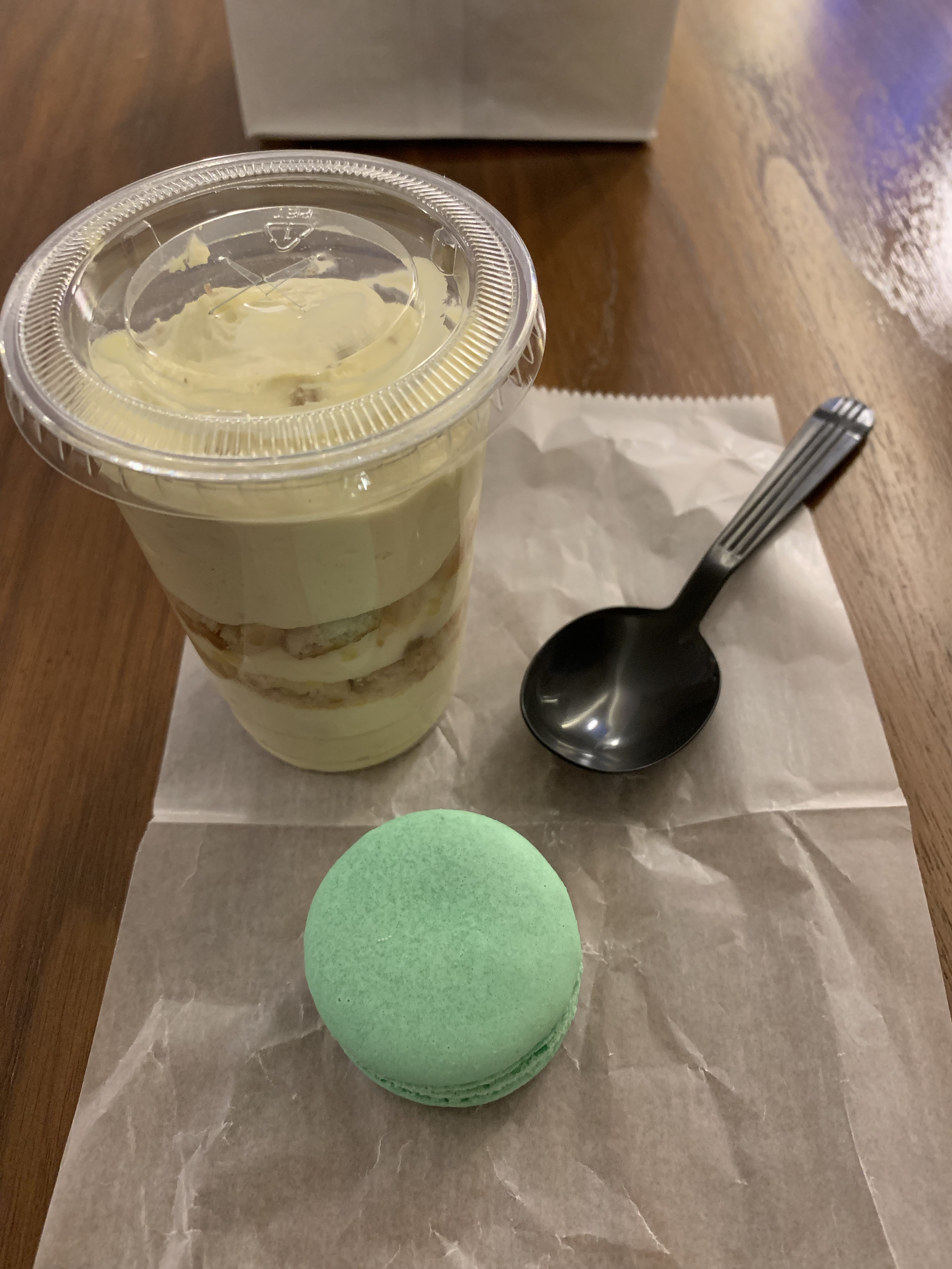 Our evening ended with a stop for dessert at the Buttercup Bake Shop. They are mainly known for their banana pudding, and they didn’t disappoint. I also bought and tried my first macaroon. Tasty, but more gooey than I had expected.