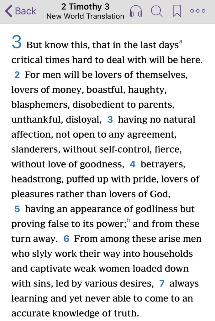 Having an appearance of godliness but proving false to its power speaks to the behavior of so many of our religious leaders. Leaders who proclaim one should follow scripture, but give a pass to other religious or political leaders who do not follow the word of God when it suits their beliefs to do so. Televangelists who ask for more and more of people’s money, then use the money to go on lavish vacations and own multi-million dollars mansions, and yet many of their followers have a hard time making ends meet, is another example.