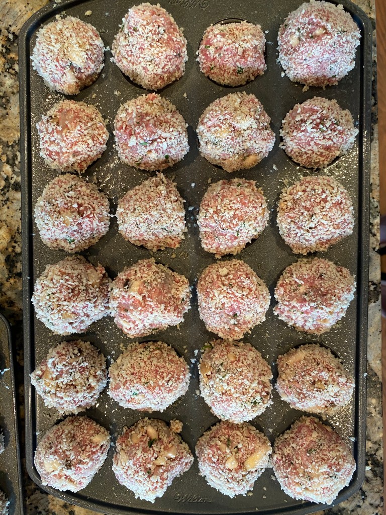 I had the urge to make meatballs with spicy sausage, hamburger and lamb as the meat mixture this time. Fresh Thyme had the lamb on sale, so I thought, “Why Not?”