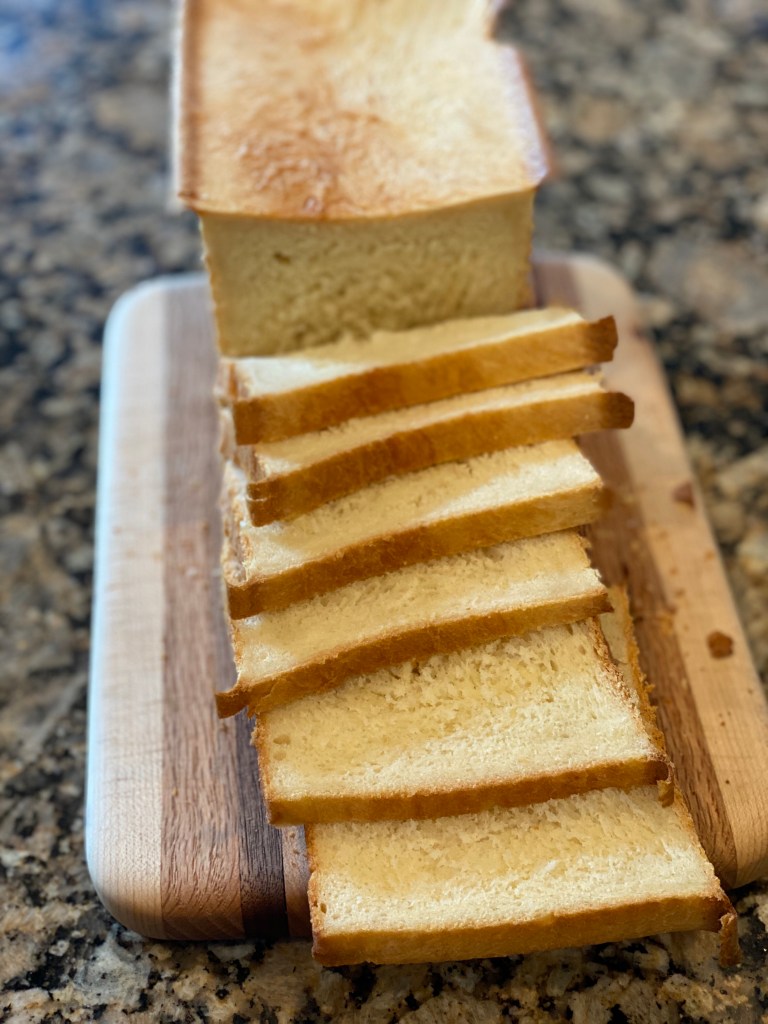 We were out of bread, which meant time to make a loaf. Decided to try potato bread since I had recently bought some potato flour. I found out my pain de mie pan was not as large as I thought. Now I need to order one that is 13″ long.