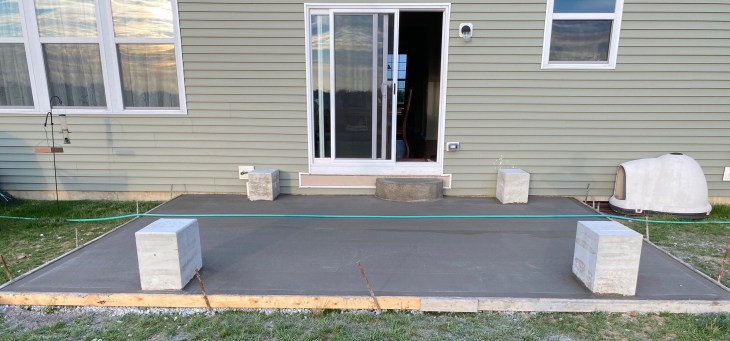 The dog house has been in three different places. It is a medium sized igloo hangs over the edge on one side of the patio. It fits perfectly on the other side where the husband likes the grill to be. Today I have it partially behind a piece of furniture, which so far actually feels the best, but I will have to move the opening a little. Having it and the grill on the same side feels a little heavy though. I’m wondering if once the gazebo is standing, which will be offset on the slab, it will balance the weight.