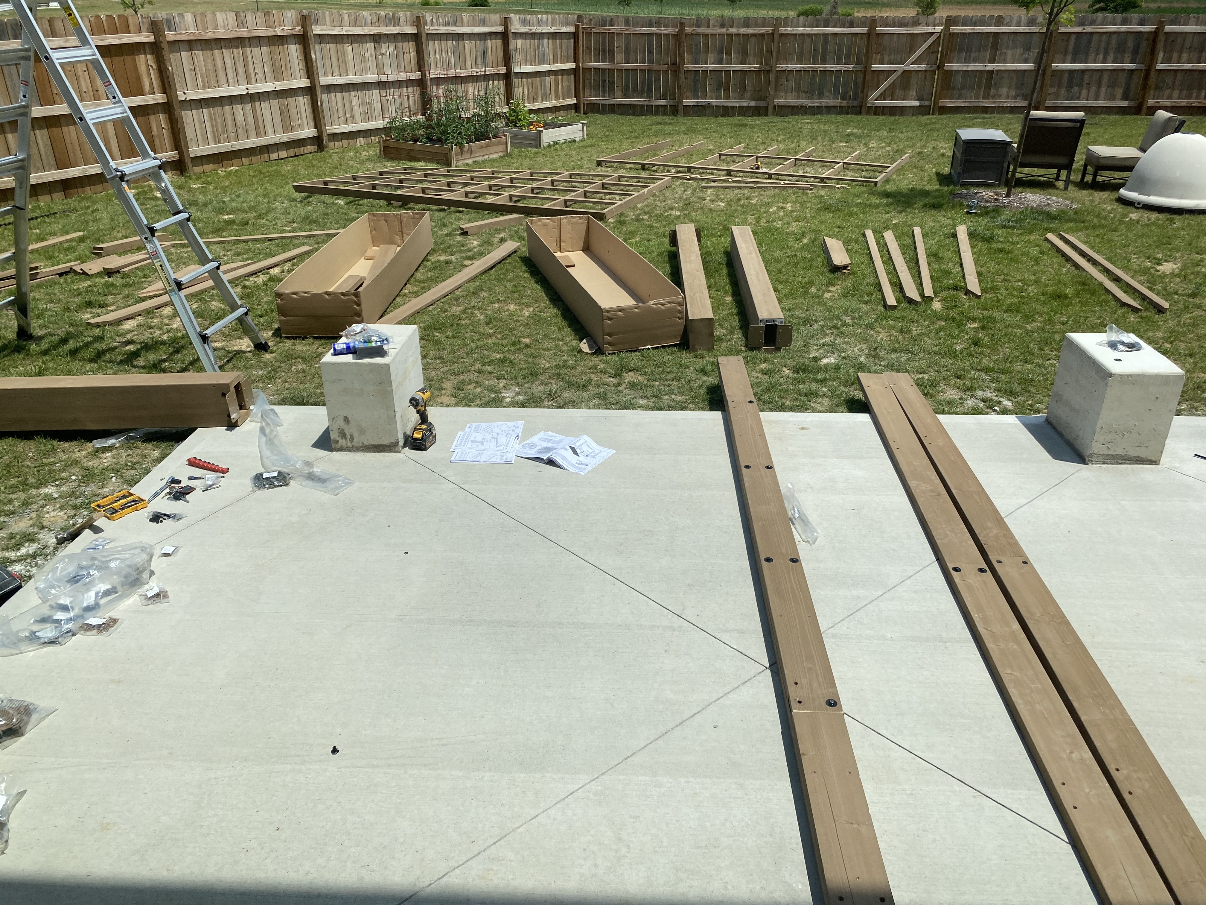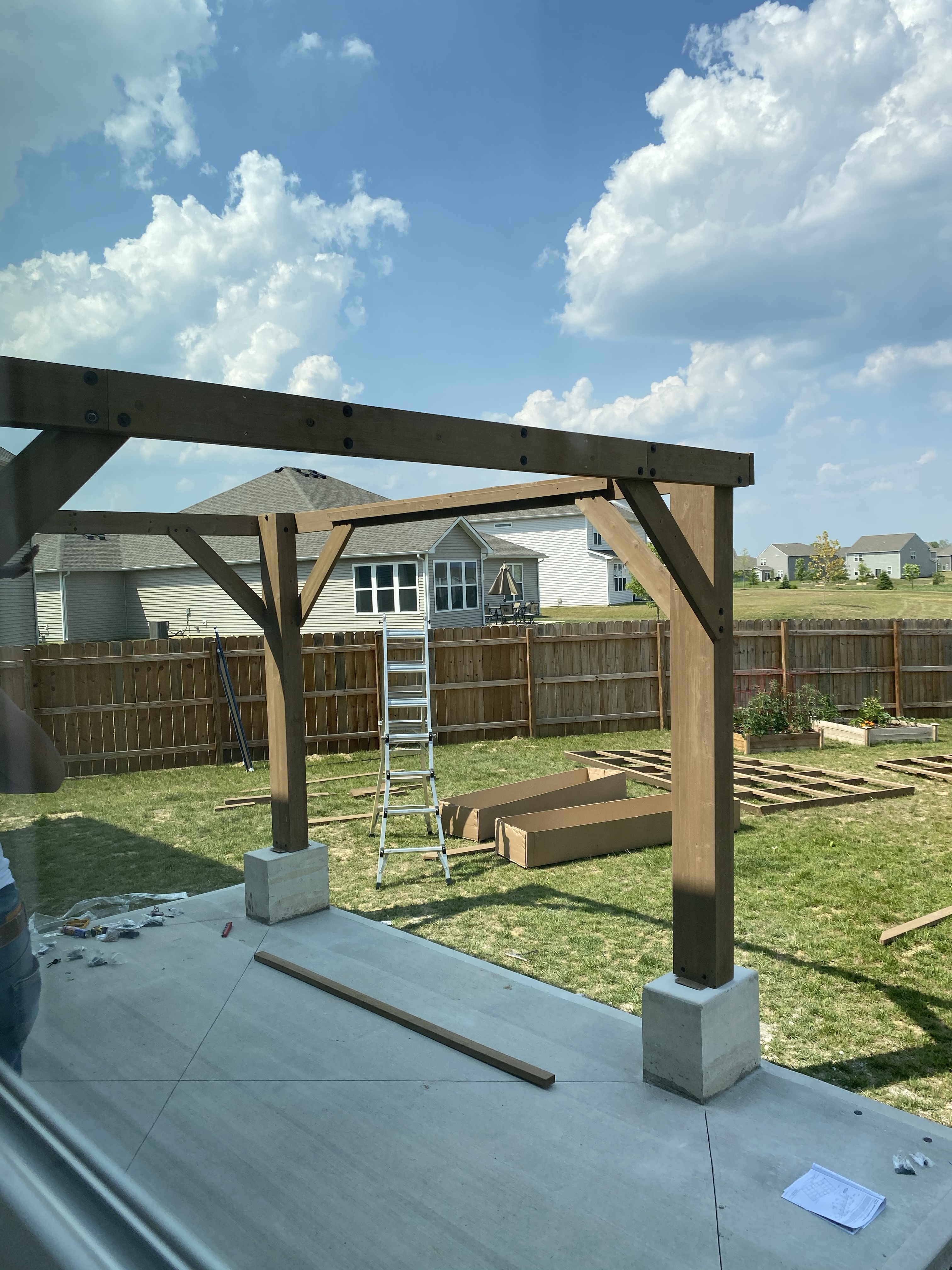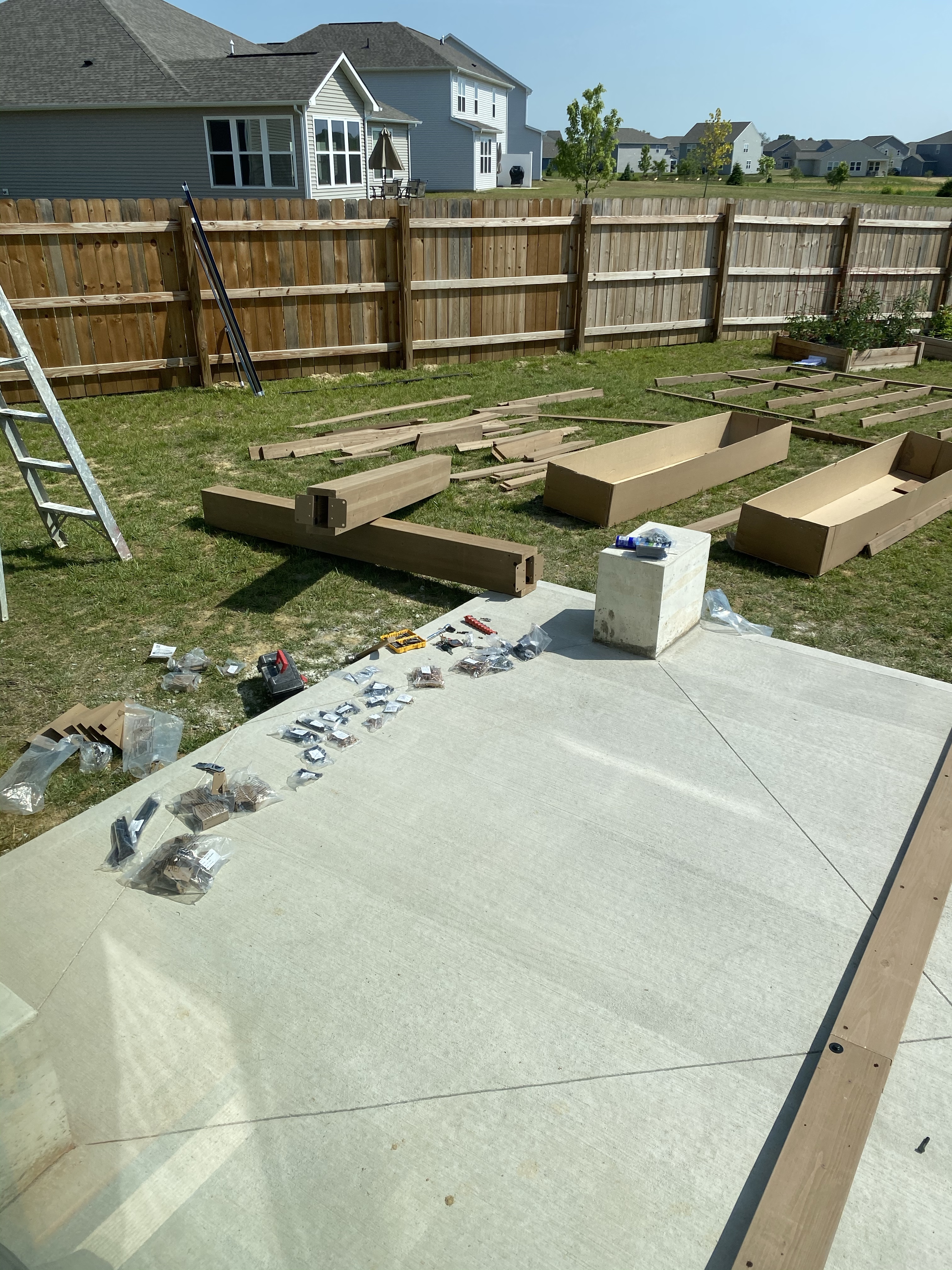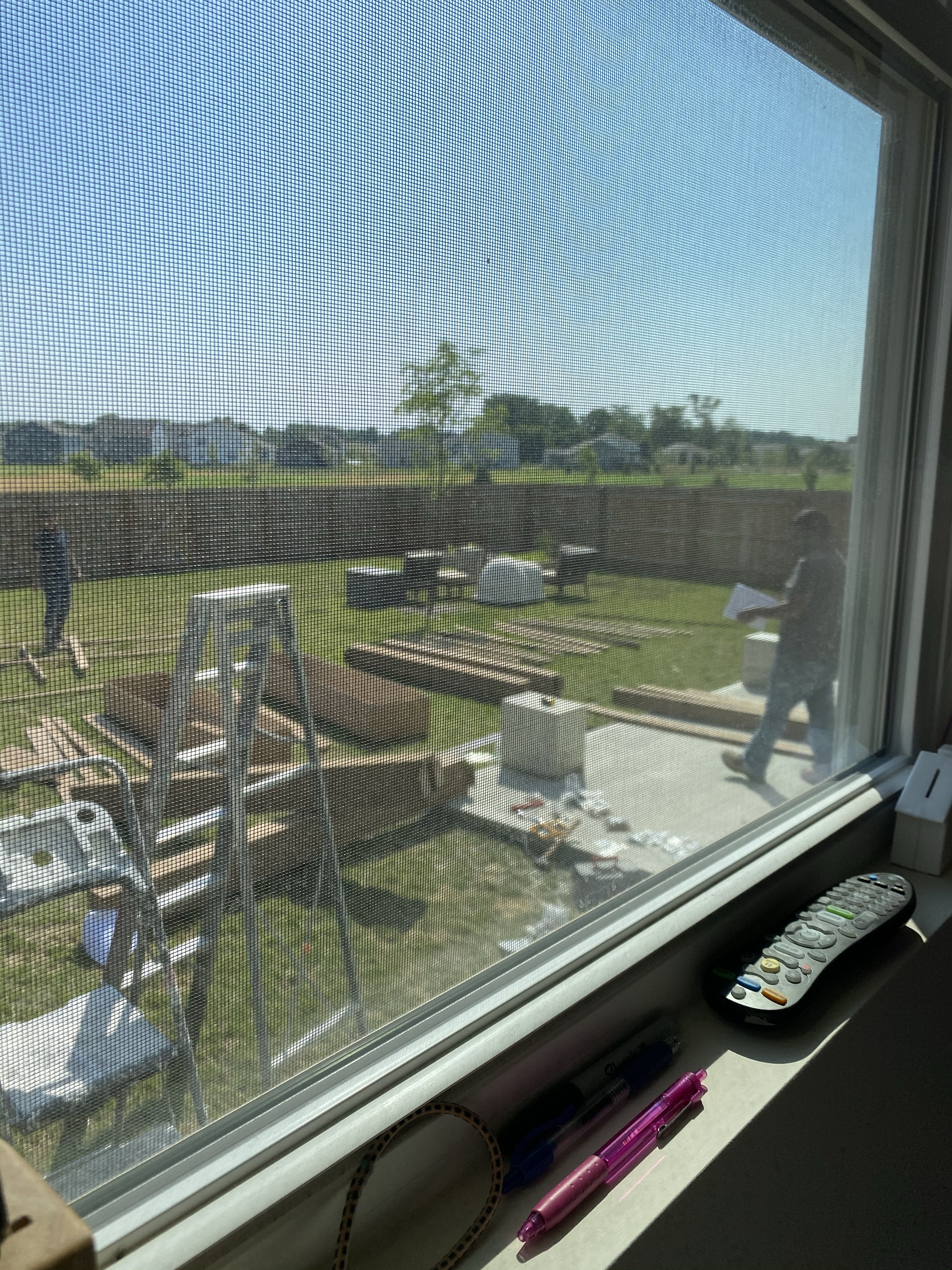 One of our big goals for the new house is complete! Hopefully our neighbors are still speaking to us as the guys putting it together went late into the night. They wanted to get it done in one day. Took them a little longer than they had anticipated.