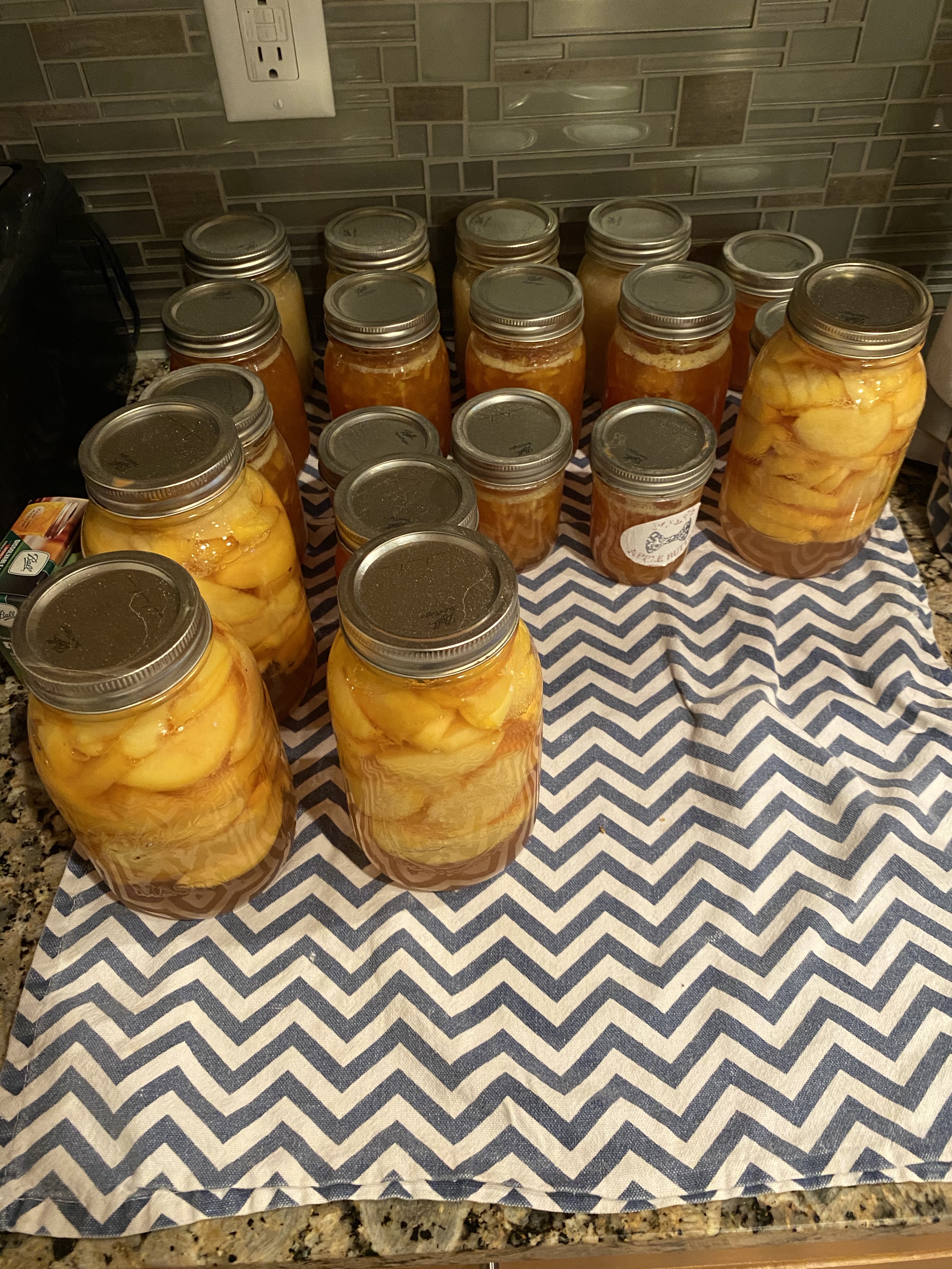 - Eight pints of peach jam (roughly),
