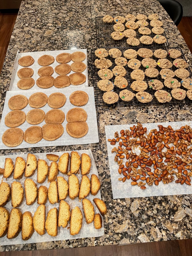 As the group listened, Jennifer led us through the recipes step-by-step, while helping to keep the conversation going; her daughter was a great help too. All of us were able to either bake as we went, or put the dough away for another day. Since my plan is to send care packages to friends and family, I chose to bake as we went. Thank goodness for my two ovens and my two mixer bowls and beaters. After today though, I may have to get a third set, then I don’t have to stop and wash in the middle of a bake—and yes, I bake enough, as you all know, a third bowl would come in quite handy.