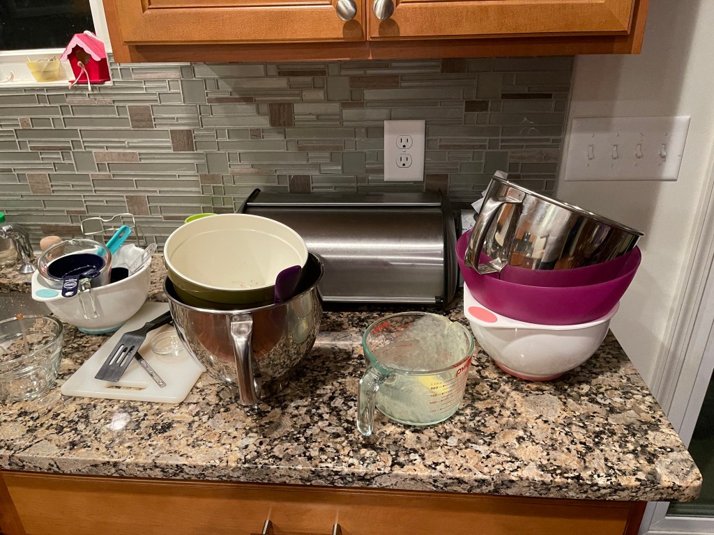 Getting things ready ahead of time, and during the baking, let me use several of my Pampered Chef wares (Jennifer is also a Pampered Chef Host). I got to use my egg whisk, variety of prep bowls, and a variety of spatulas. The one thing I think I’ll need to order next will be stackable cooling rakes if Pampered Chef has them.