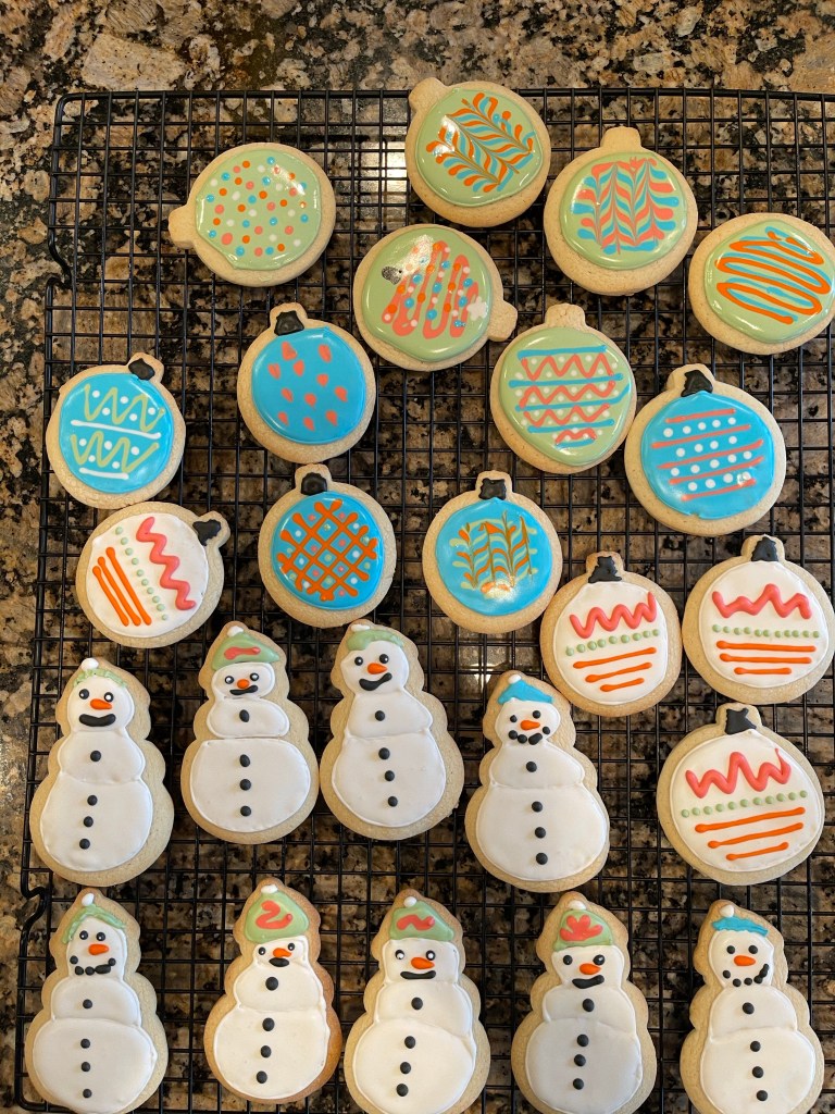 This evening was Round 2 of the cookie baking with Jennifer. For this round we made Soft Chocolate Chip with Cranberries, Mexican Wedding, Ginger Snap, and Chocolate Chip Pretzel cookies. There seemed to be more people on Zoom for Round 2, and definitely a little more festive dress. My favorite was a head band with a decorated tree on it. Several people were wearing Mickey Mouse ears.