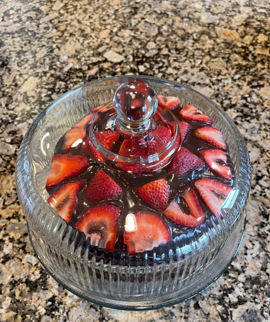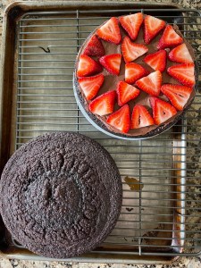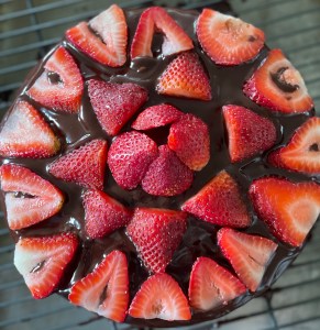 I’ve been wanting to make a cake the past few days. This morning I decided I’d make a chocolate cake with strawberries somewhere in the mix.