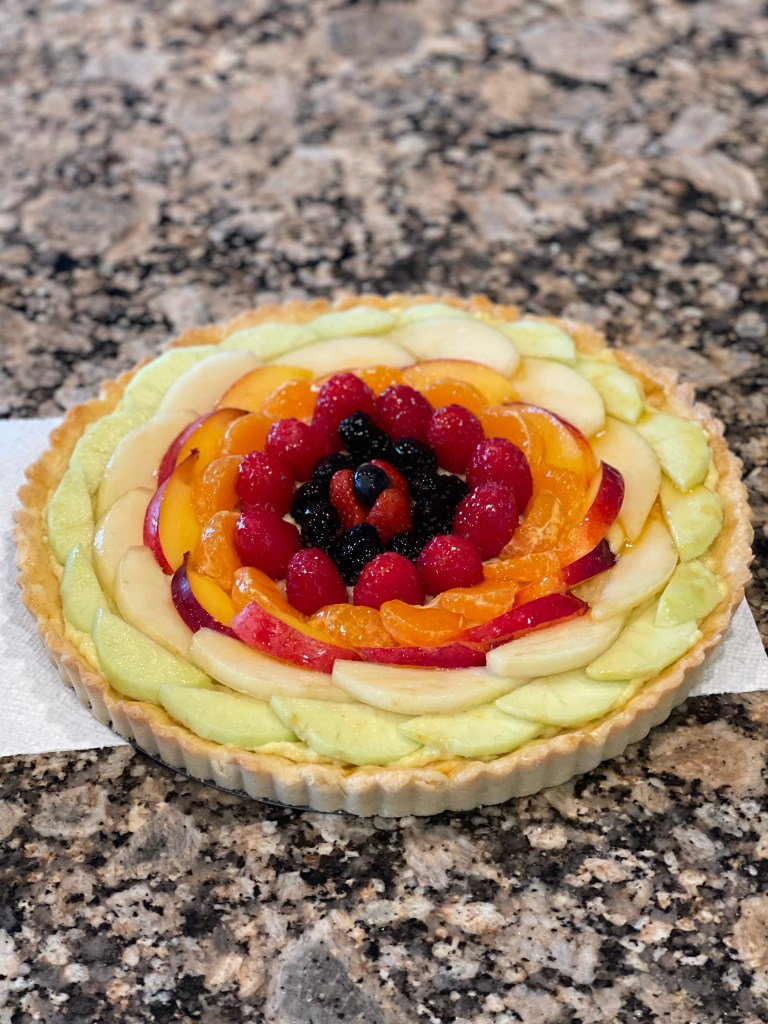 The highlight of the day was making my first fruit tart. According to my resident expert, it was pretty good. The crust was tasty, as was the filling. However, and I wholeheartedly agree, the fruit itself was not as sweet as anticipated. A note for the next time is to think about the fruit to use, and to do the best to buy the fruit at its peak of sweetness.
