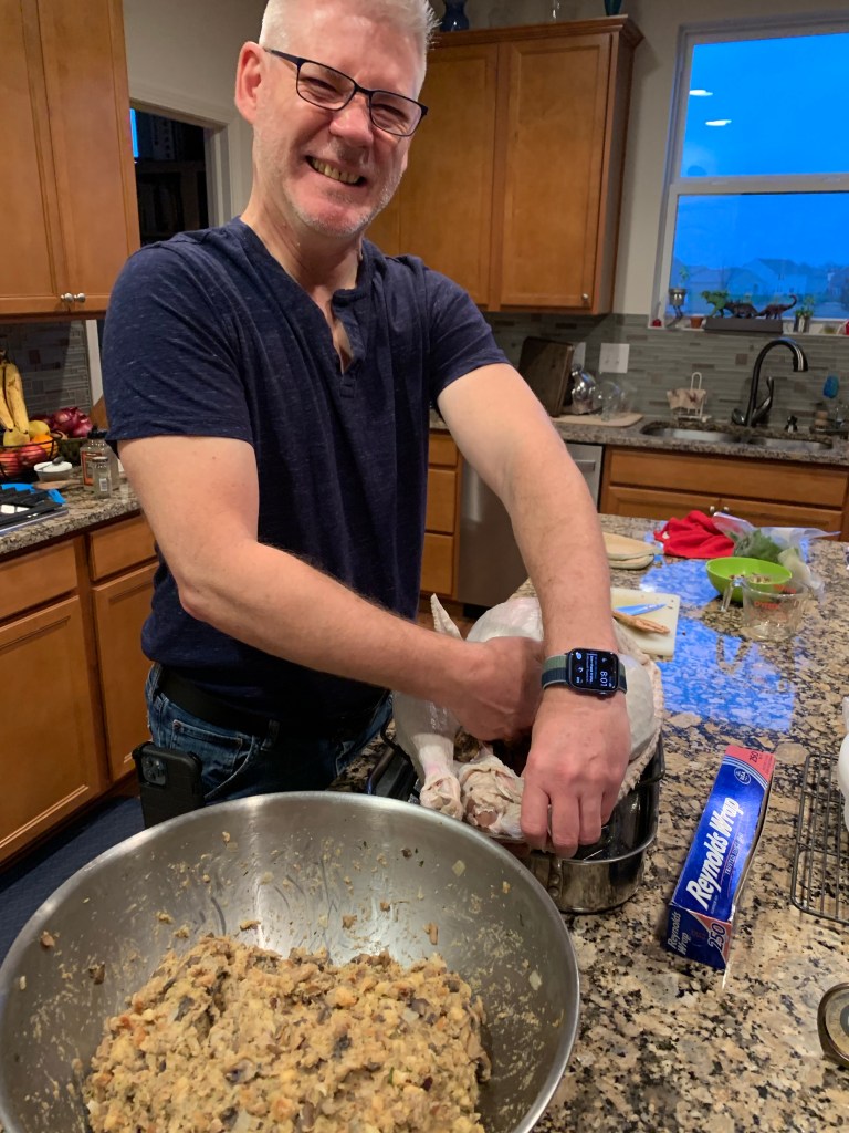 We made his famous stuffing mix, then filled the turkey to the brim.