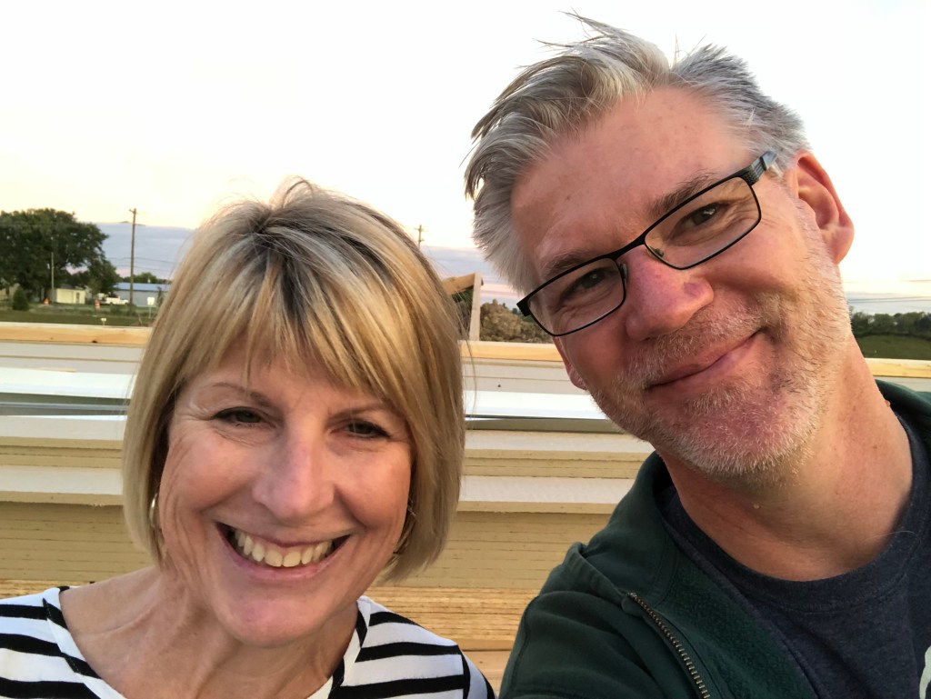 Before going to dinner, we stopped by the house. She hadn’t been able to see it after it was finished. The last time she was in town it was a bit of a skeleton. Our traditional selfie at that time was taken while sitting on a stack of lumber lying in the yard.