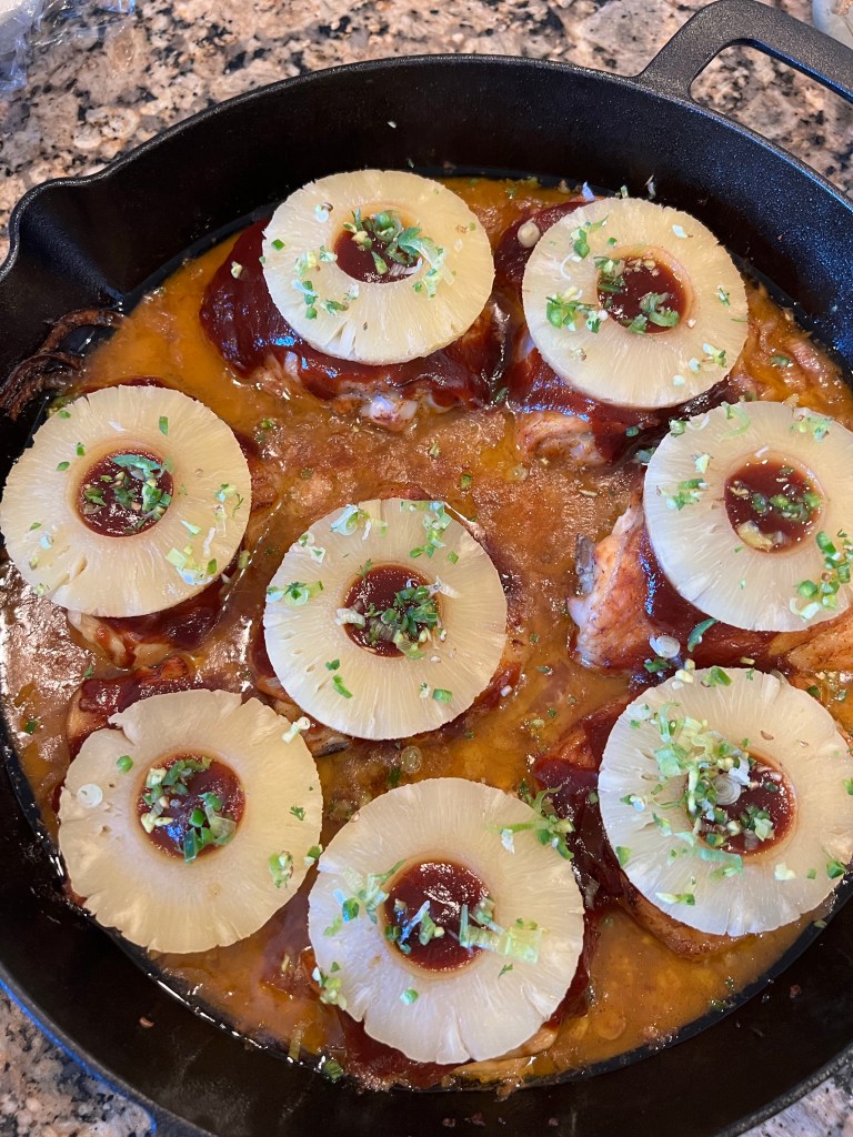 There was a recipe in my Cast Iron Cooking magazine I’ve been wanting to try for a little while. This past Saturday I made my shopping list to use after writing group. The list was short though. I had everything but the chicken, the scallions, and the pineapple.