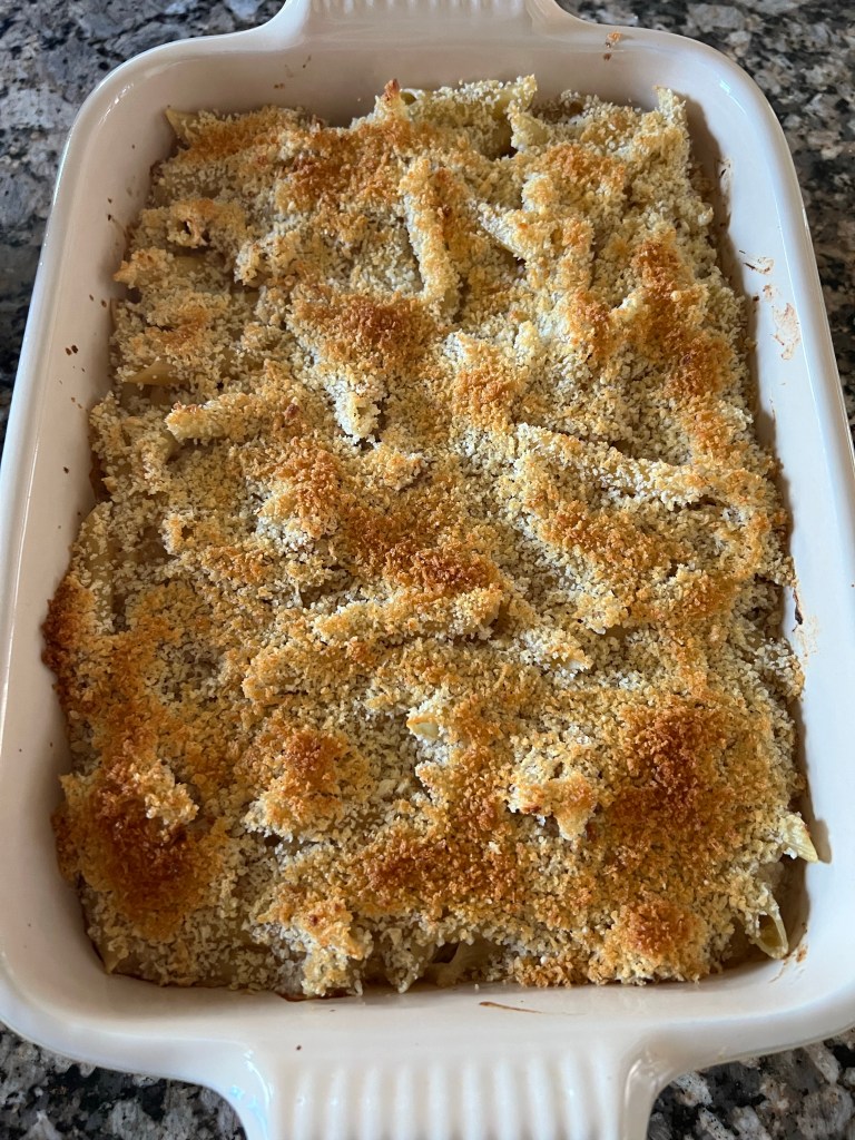 What we did have is tuna and plenty of pasta. I could have made plain pasta since I recently made some sauce, but I wasn’t ready to use up a jar of it yet. Instead I decided I’d make my first tuna casserole. Not having any recipes that I remember in any of my cookbooks, I went to the Google. There were plenty of hits to choose from, and decided to take a chance on one by Martha Stewart. Can’t go wrong with Martha, right?