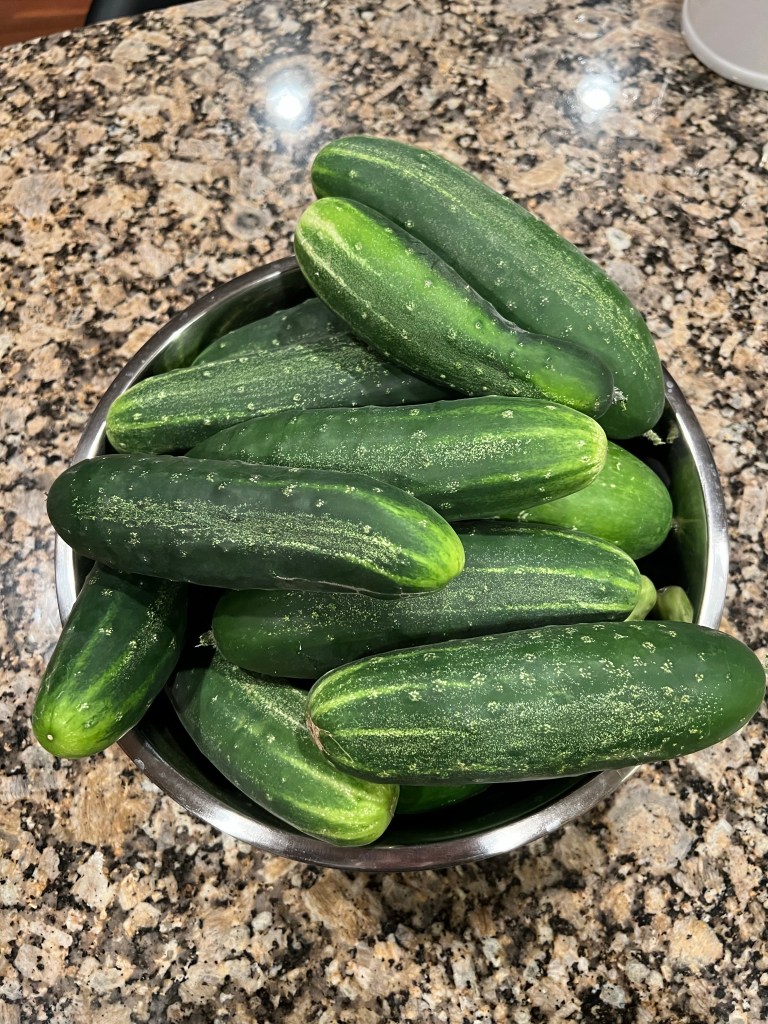 On the agenda for this coming week is an attempt at canning some spear pickles (see the picture for the latest cucumber harvest). I’ve got the bread and butter pickles down, which I think I had mentioned making several pints recently. Since I’ll have to have the pressure canner out anyway, I’m going to make a trip to the local farmers market/orchard to see if the corn is ready so I can can some of it as well.