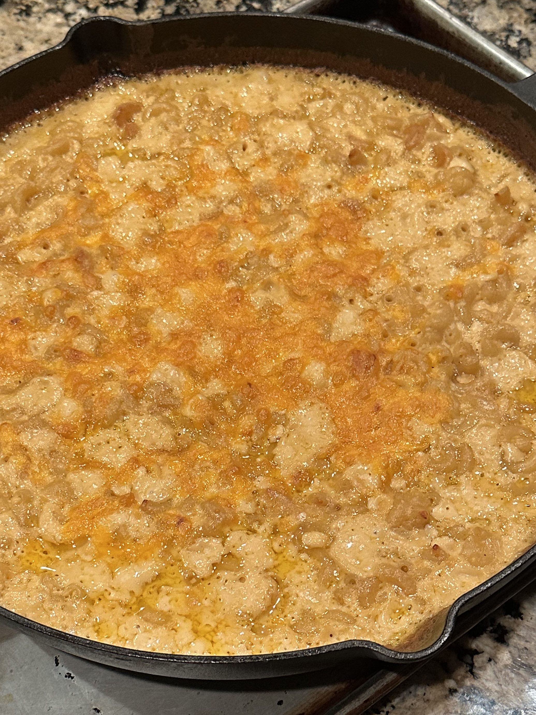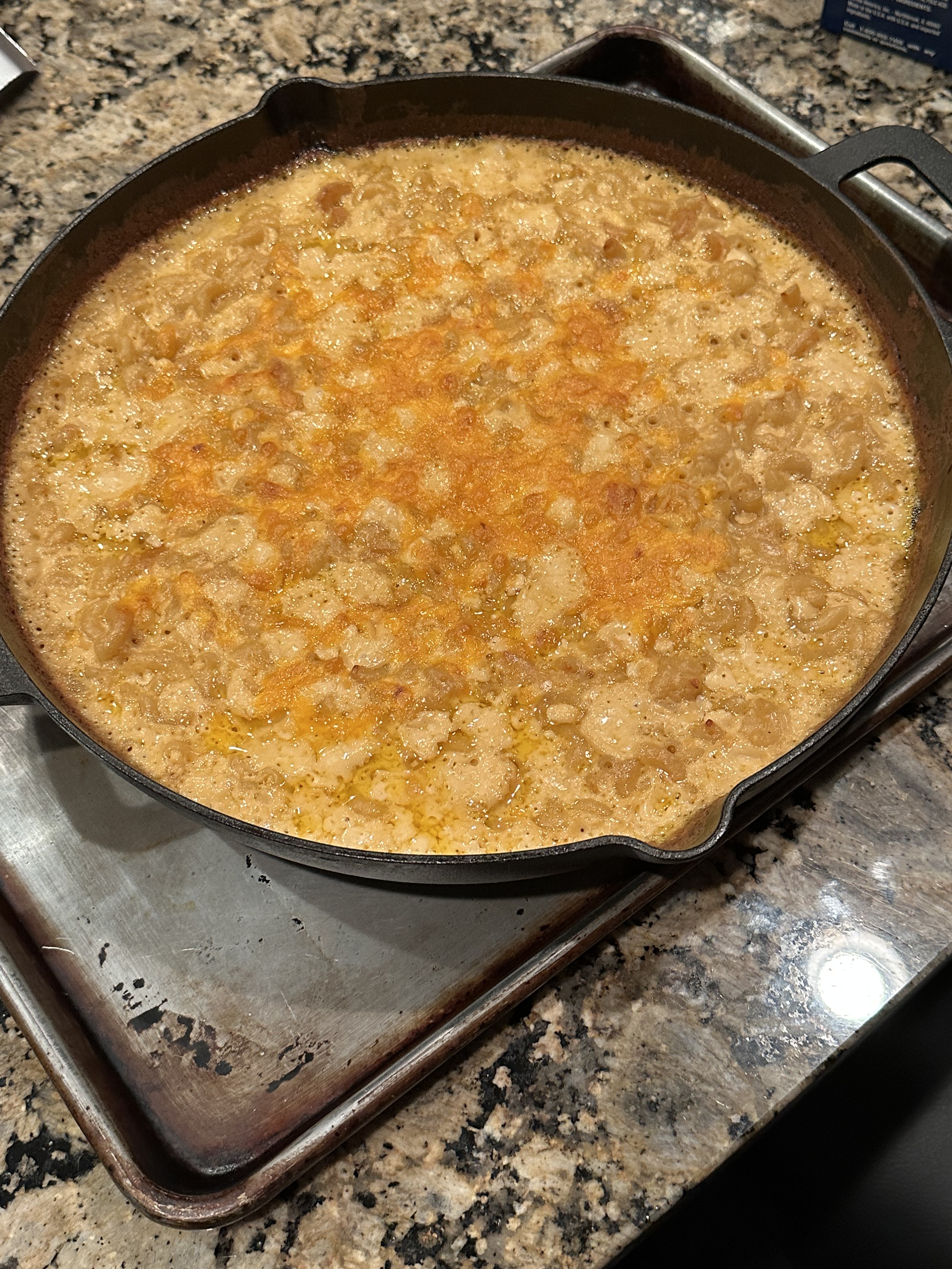 When we finished, we took it, along with the dessert he had brought home from work, to the Papa’s for dinner. We almost always have Wednesday and Sunday dinners together. Wednesday is at their place, Sunday’s at ours. The kids have been joining us as well while still living with us. In case you were wondering, the homemade mac and cheese was a hit. It had just a touch of heat, with great flavor. I’d have it again.