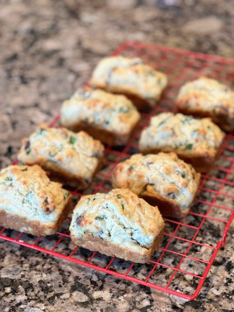 Just because I’ve been wanting something different for breakfast, I threw a couple of things together over last weekend. The first was just a plain old sausage, egg, and cheese on an English muffin. The second was a sausage and green onion muffin. I actually made it as a mini loaf instead to give it a little extra flair. Both are freezer friendly and are hot enough to eat after 90 seconds in the microwave. Just enough time to grab my backpack and head off to the office.