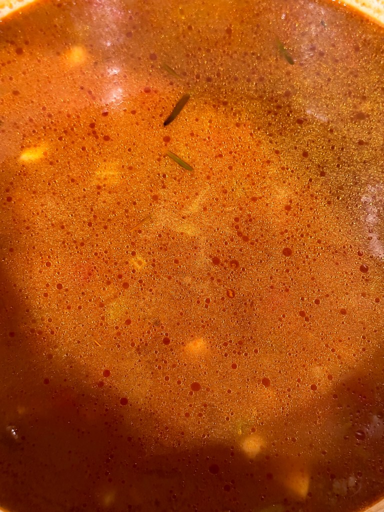 He was always a great cook and knew how to mix up the flavors. At the time, when he brought it out, I have to admit to having mixed feelings about eating it. But whatever he had done to it, the taste was very flavorful. What he didn’t say was how tough it is to peel the thing. It took me as long to get the skin off and the seeds out as it did to cook the whole soup! After an hour of simmering, the meat was very tender and the squash was just the right texture without being mushy. Papa Rob even said it was one of the best soups he’s ever had! Who am I to argue with his fine assessment?