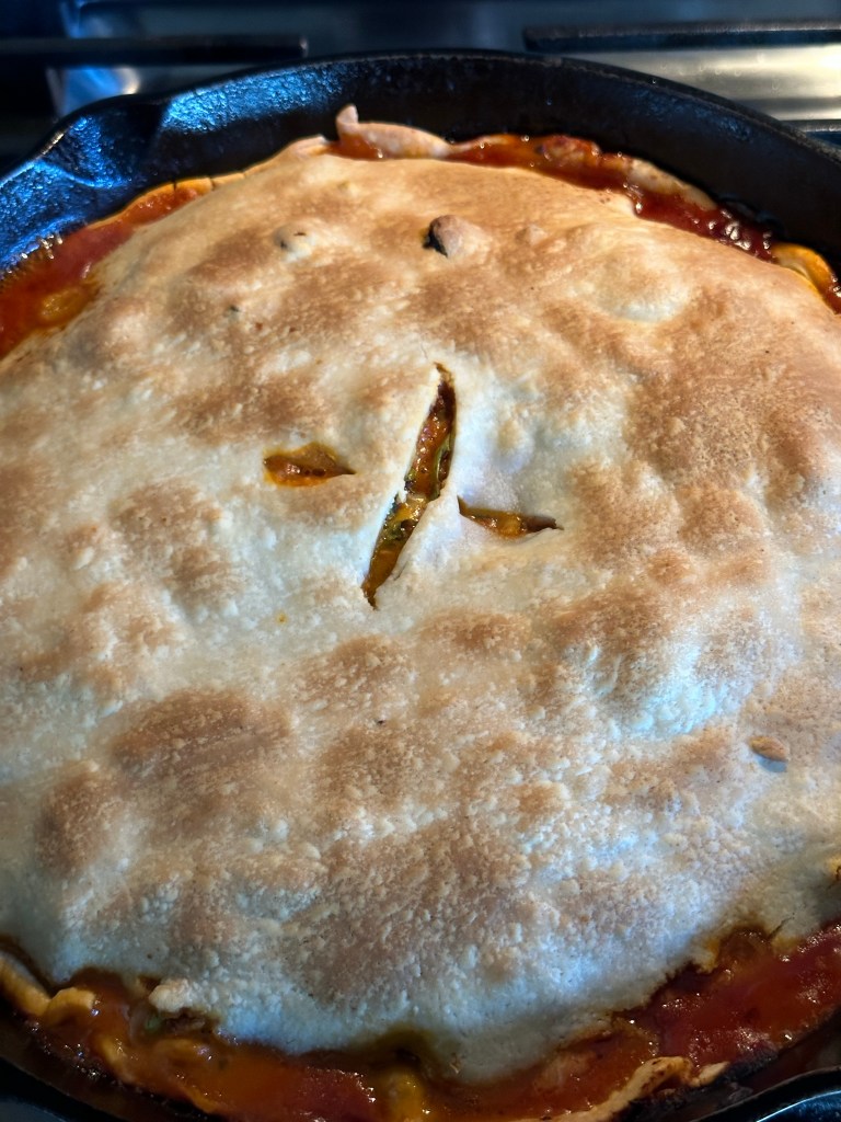 This evening right after work, I went ahead and made an Italian pot pie. Thursday is euchre night, so I made it ahead of time for my son to have dinner, then left to see how the cards were going to treat me. Meaning, I’m not sure yet how it truly tastes. The quick sample taste right after it came out of the oven was promising. I’m just not sure how the spinach substitute using arugula will be in the end. I never fell for the spinach propaganda as much as I enjoyed watching Popeye. I’ll let you know next week how it turned out.
