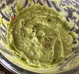 While out shopping for ingredients, I noticed avocados were on sale. I got a craving for guacamole looking at them, so I bought three. Usually I wait too long to cut them open. This time the Guac god was watching out for me because when I cut them open, they were beautiful inside. Bright green and oh so creamy when mushed. After adding some seasoning, jalapeños, and tomatoes, it was absolutely perfect. It lasted several days before starting to brown, and on that day it was all gone.