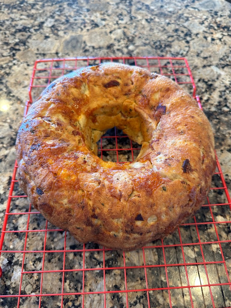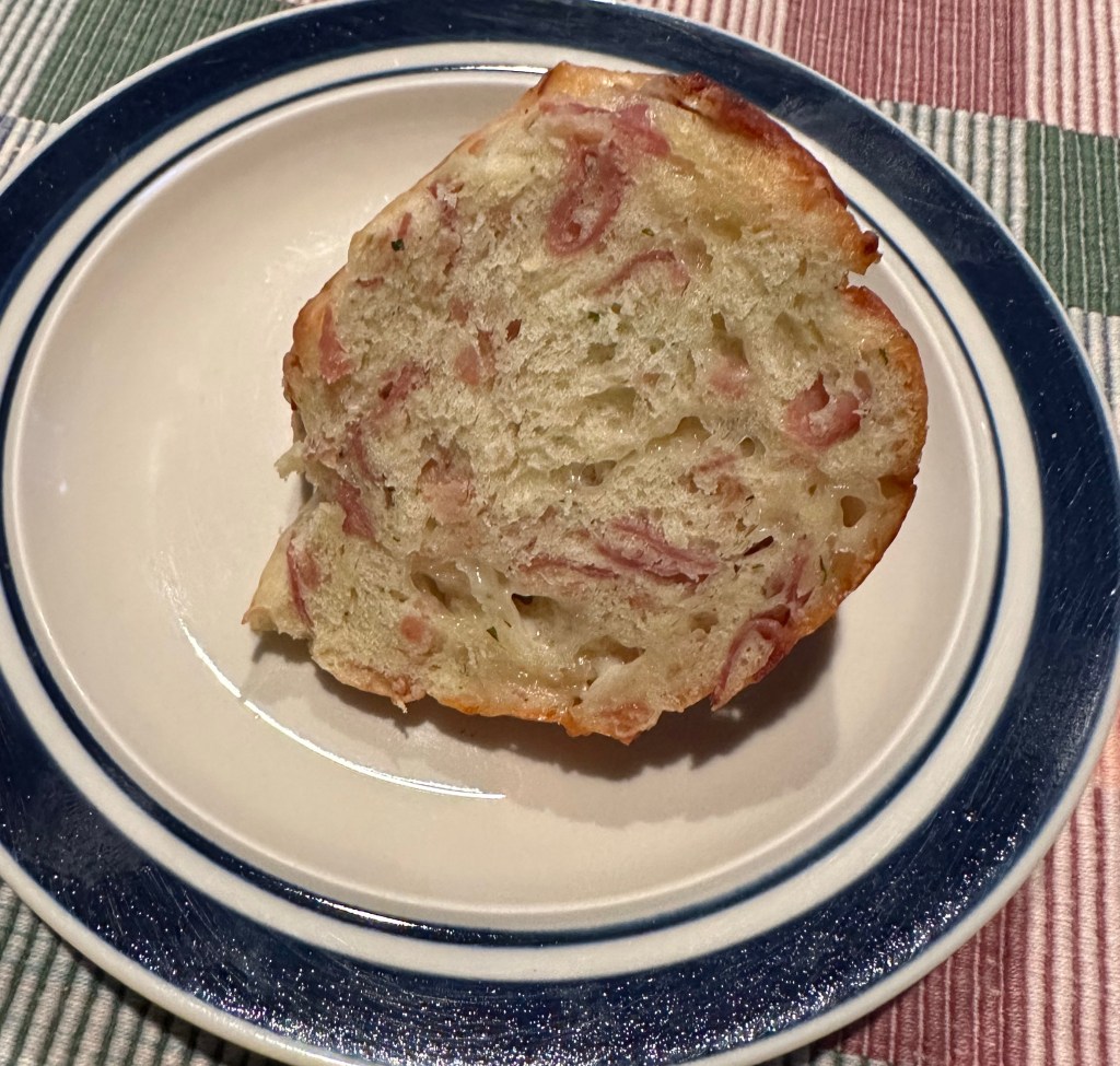 Is it a breakfast bread? Dessert bread? A meal all its own? The baba rustico bread leaves us to your own imaginations as to when and how to eat it. I had it as all three, even adding some peanut butter once. It’s a bread with prosciutto, salami, and provolone cheese baked in.