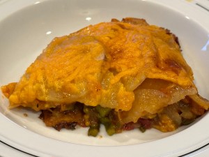 Making the scalloped potato pot pie was a risk. My husband does not like scalloped potatoes (I know, how is that possible). I wasn’t sure if he would want to try it, or would it just be me eating it. When he saw the dish, even he wasn’t sure at first if he would have any for the reason stated above. But, he did and…he liked it. If it were just the potatoes, I’m not sure he would have. It was the filling that won him over, the potatoes were just a topping. This recipe goes on the make again pile.