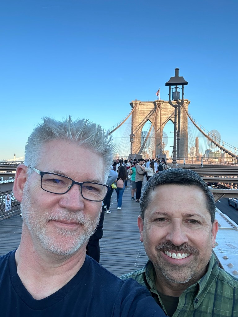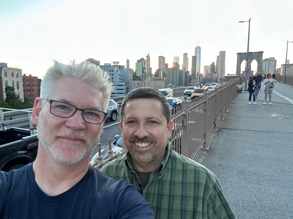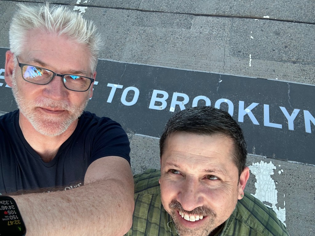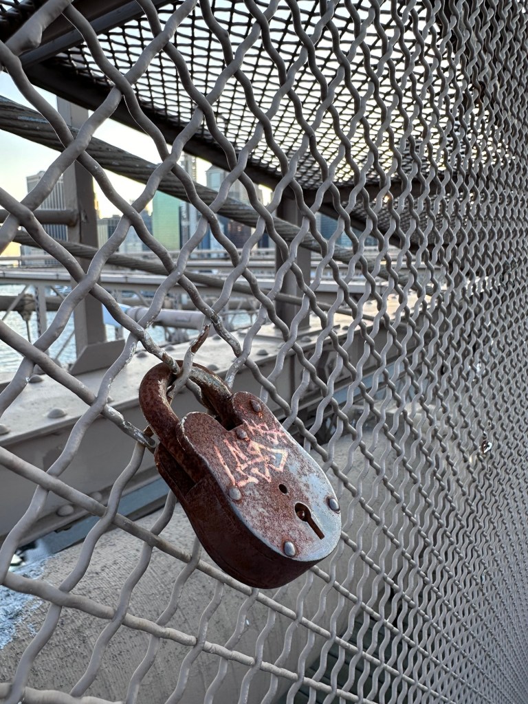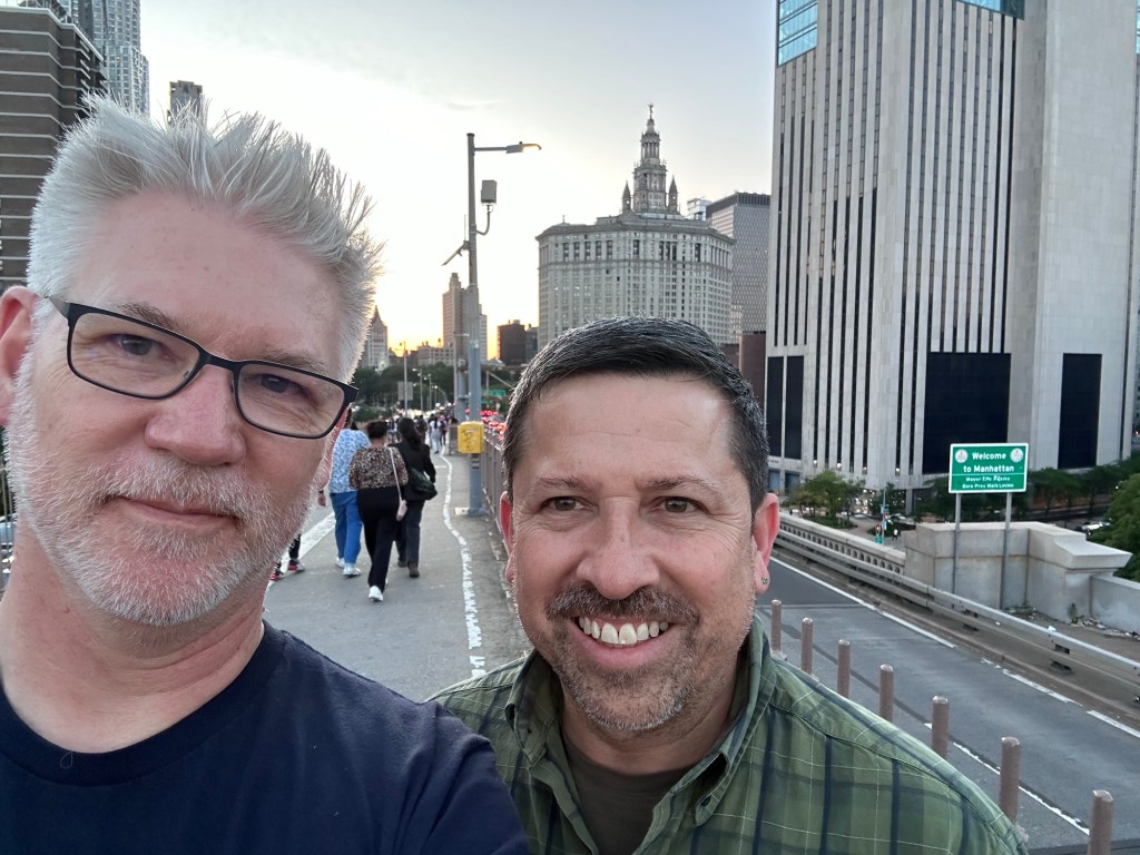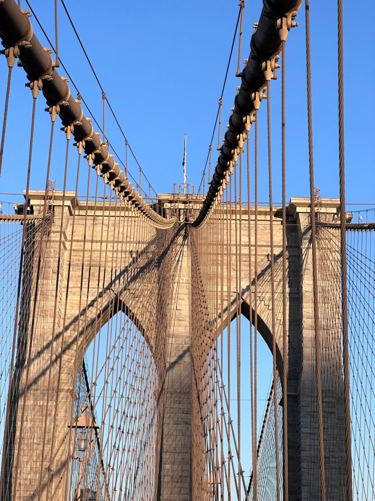 Our last adventure for the evening was the Brooklyn Bridge. Walking across it has been on my bucket list for a long time. Luckily I have a hubby that is open to doing things and indulges me. Who knew walking across a bridge could be so exciting. The weather, the company, and the views couldn’t have been more perfect. I also got to be in Brooklyn for the first time, even if only to step over the Welcome to Brooklyn sign by a step.
