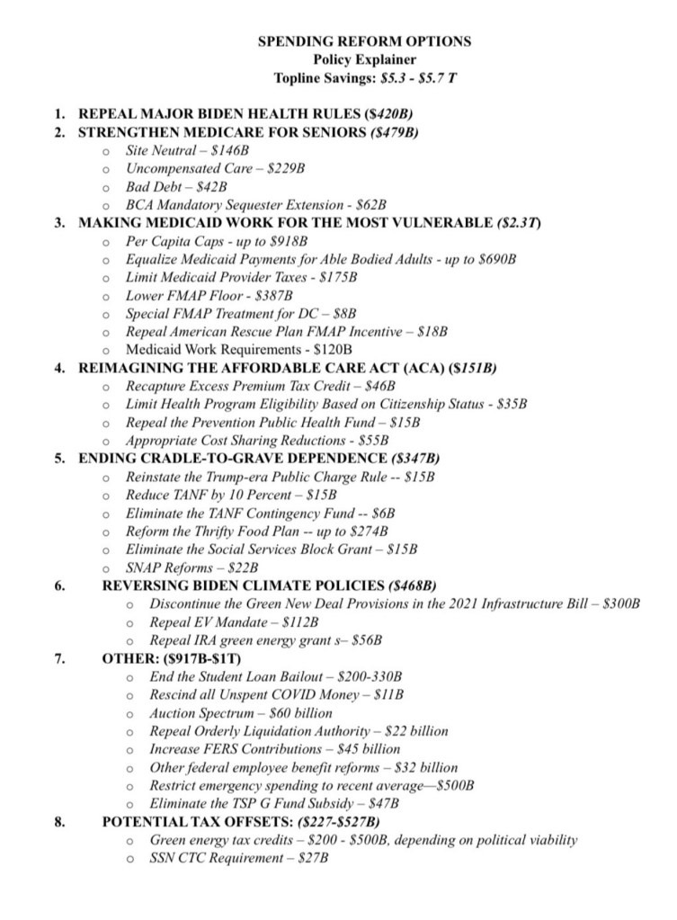 - Eliminate some provisions in the 2021 Infrastructure Bill, such as upgrades to airports, increasing passenger rail services, electric vehicle charging stations across the nation, upgrading the power grid, cleaning up environmental hazard sites, and safeguarding our infrastructure system.