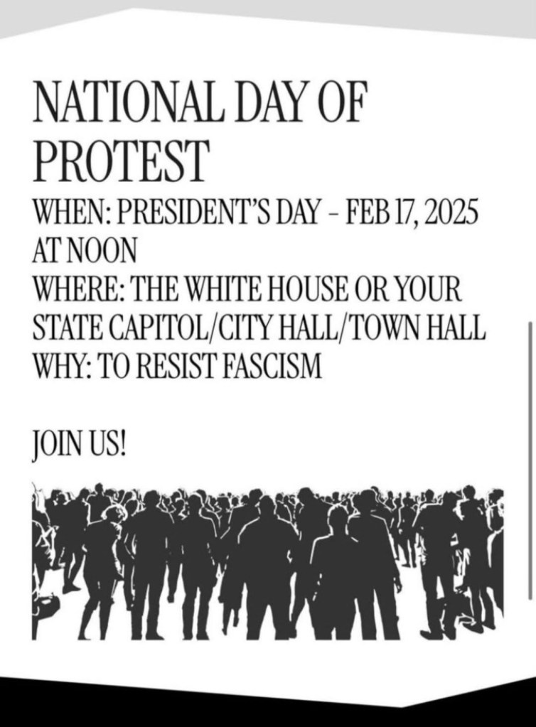 - If you are off, participate in the Not My President President’s Day protest on Monday, February 17, noon at each of our Statehouses.
