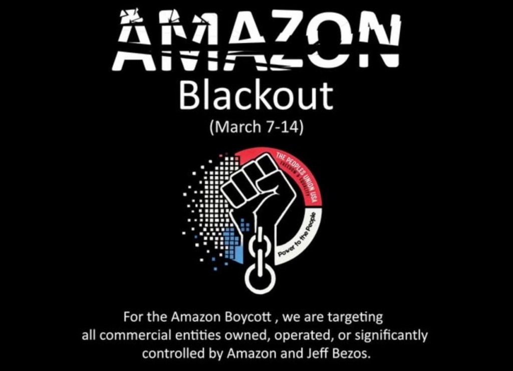 - Boycott Amazon, and any other company owned or operated by Bezos, such as the Washington Post, from now until March 15 (I know it may cause withdrawal, but you can do it for all the reasons above).